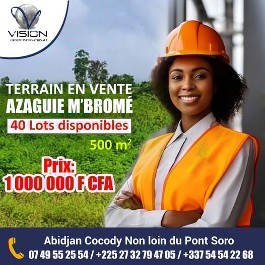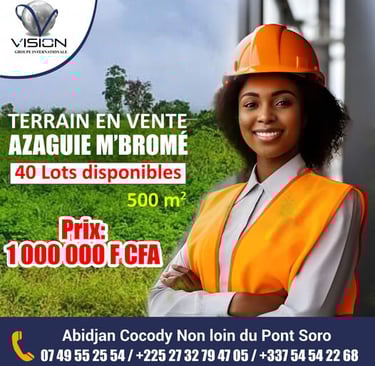 Offre Exceptionnelle : Vente de Terrain à 1 000 000 F CFA le Lot de 500 m² à AZAGUIE M'BROME